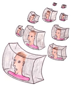 A bit like the kid behind a reporter saying “mom! I’m on tv!” – many subagents can now broadcast their existence to the whole organism and seek like-minded shards to work on (artistic? political? cosmic?) projects with. Not all the shards understand each other’s communication style, so there is a lot of cross-talk that goes unrecognized by the whole yet is happening beneath the surface.
