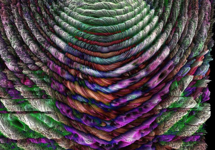 By selecting features of my hallucinatory environment and attending to them, I could make them grow and in a way “reify them,” meaning that they would feel more and more real and vibrant the more I paid attention to them. I noticed that I could transform the walls of the hallucinated environment into glass walls with a peculiar property: when light goes through the wall in one direction it becomes lighter and when it goes in the other direction it becomes darker. This resulted in the room being filled with what I later recognized to be cohomology fractals(“Cohomology Fractals,” n.d.).
