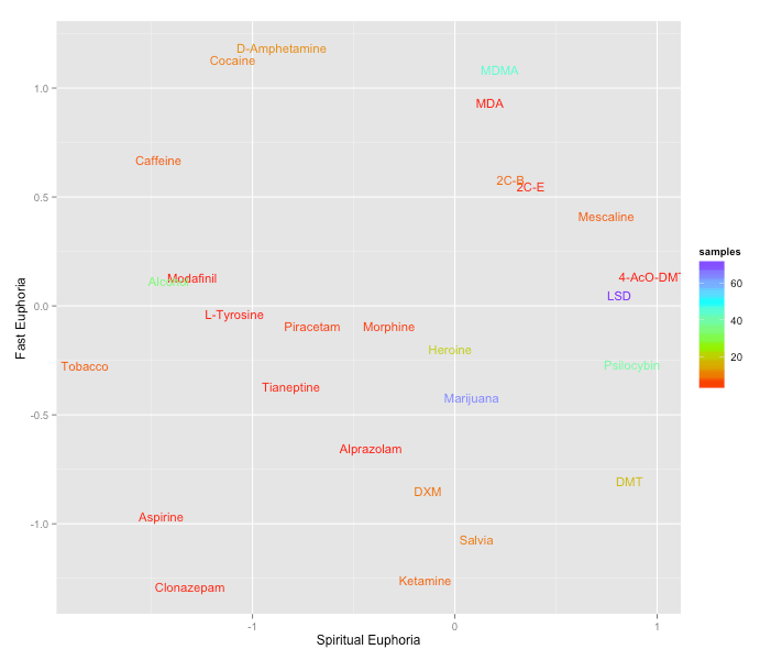 This is one of the main dimensions along which a drug can have effects, roughly described as “high-energy and high-valence” (with high-loading terms including: energetic, charming, stimulating, sociable, erotic, etc.).